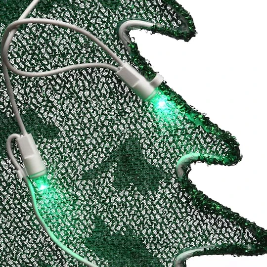 This colorful holiday decoration is made with reinforced fabric material wrapped around a wire frame creating a strong and durable holiday trimming. Santa is behind the wheel of a bright red truck with a snowflake pattern, strung with large C7 multicolor lights and carrying an evergreen tree. In addition to the light string, this decoration is lit from behind with warm white LED lights that create additional sparkle and shine.