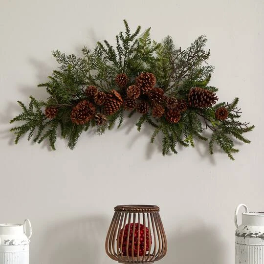 Are you looking for something different? Something that says “Autumn Fresh”, but not something that’s typical? Then look no further than this striking 30″ pine swag. Brown, bumpy faux pinecones come intertwined with pine greenery to create a crisp-looking decoration that will freshen up any room. Also makes the perfect gift for that person who has everything. Your artificial plant will look beautiful for years to come; simply wipe clean with a soft dry cloth when needed.
