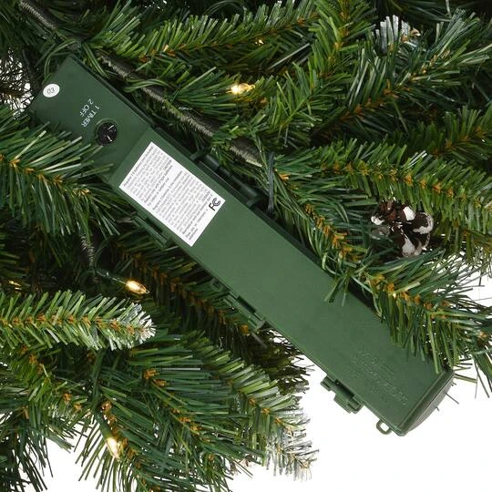 Designed for filling decorative urns and pots, this spray of evergreen branch tips is trimmed with white-tipped pine cones and red berries. It is pre-lit with battery-operated warm white LED lights that are energy-efficient and long lasting.