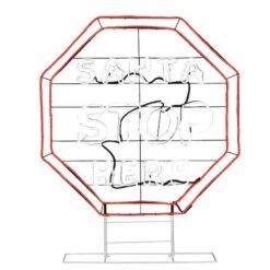 Similar to neon, this decoration is constructed of rigid tubing that glows with holiday red and white lights. Designed in the classic octagon shape of a stop sign, its message reads ”Santa Stop Here”. This decoration is lit from within with tiny LED lights that are energy efficient and long lasting.