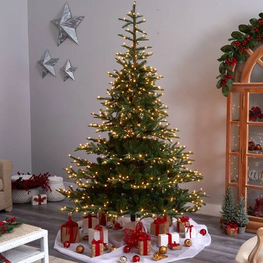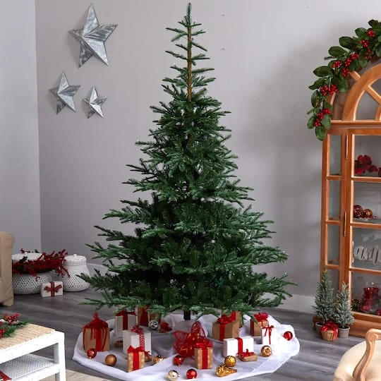 Bring the outdoors in, literally, with this rustic, natural looking, layered Washington spruce artificial Christmas tree. Sparse by design, with spacious gaps that allow you to showcase your favorite ornaments on the 1,561 easy-to-bend branches, this Christmas tree gets a bit fluffier on the bottom. Inspired by nature and designed by our leading interior decorators, your tree arrives pre-strung with 650 clear lights, saving you time and money. Standing at 8ft. from a metal stand (included in height), this tree can be displayed in compact spaces that need some extra Christmas love. This item will need to be re-shaped when removed from the secure box to allow it to reach its fullest size. Your artificial Christmas Tree will look beautiful for years to come; simply wipe clean with a soft dry cloth when needed.