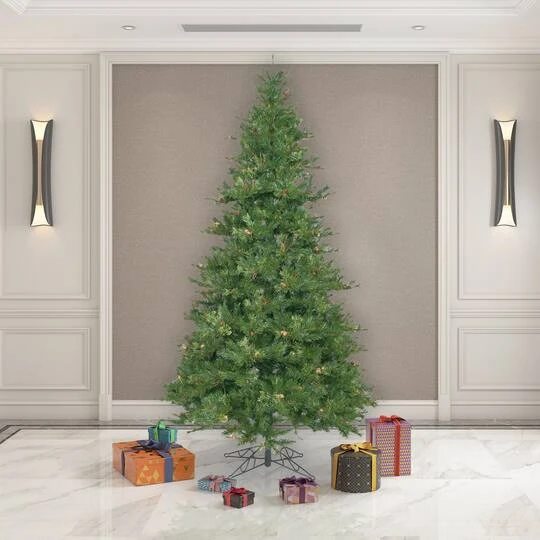 Spruce up your home for the holidays with this artificial Christmas tree. This incredible tree comes unlit, it has a beautiful blend of PVC and Hardneedle tips with real pine cone and grapevine accents on metal hinged branches, as well as a metal tree stand.