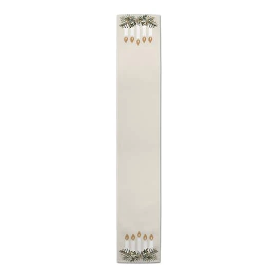 Candles With Greenery 16×90 Poly Twill Table Runner