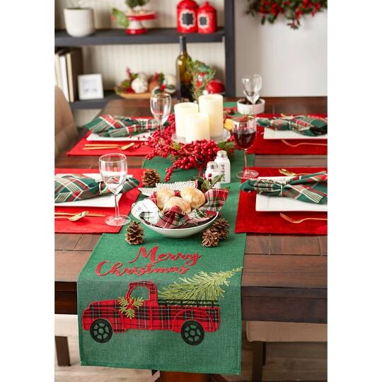 This table runner measures 14×108 inches in size, appropriate for a table that can seat 8 -10 people. Use all through the holiday season. Can be dressed up or down to create the perfect look for each place setting at your holiday table; simply add napkins and rings, placemats, and a tablecloth to complete the look.
