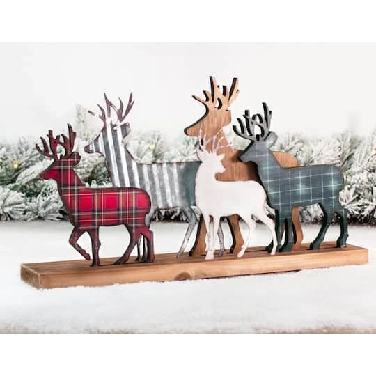 This group of different poses of a reindeer family with a wooden base brings vitality into the Christmas party. Use this to gift loved ones, family or friends.