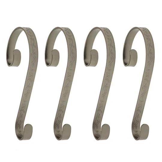 Haute Decor Stocking Scroll® Holly Embossed Pewter Stocking Holders, 4ct.